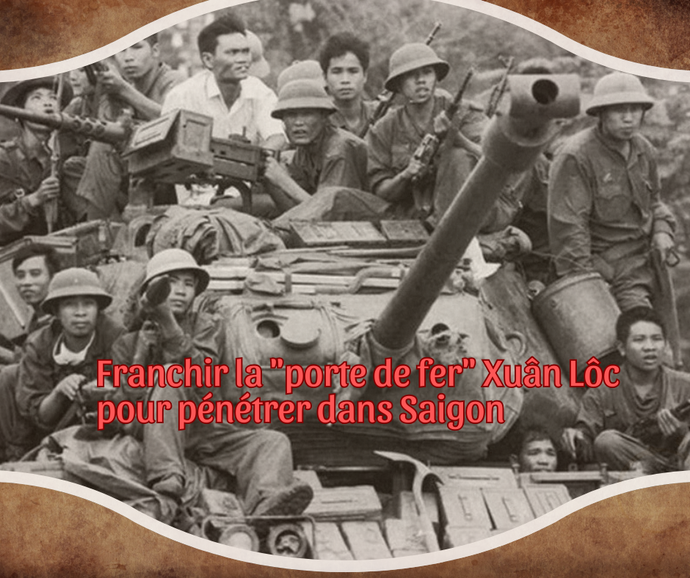 | Vers 11h30 du 30 avril 1975, les chars de l’Armée de libération enfoncèrent les grilles du Palais présidentiel, marquant la victoire finale après 30 ans de résistance de la nation. |