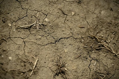 | Sol craquelé par la sécheresse dans le vignoble de Saint-Émilion, en Gironde, le 1er juin. |