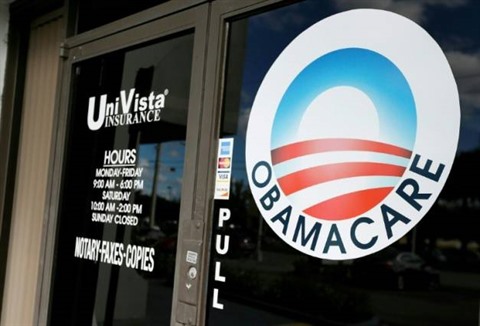 | Le logo Obamacare sur la vitrine d'une agence d'assurance santé, le 10 janvier à Miami, en Floride. |