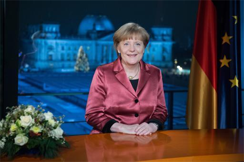 | La chancelière allemande Angela Merkel enregistre ses vœux à la télévision, le 30 décembre 2014 |