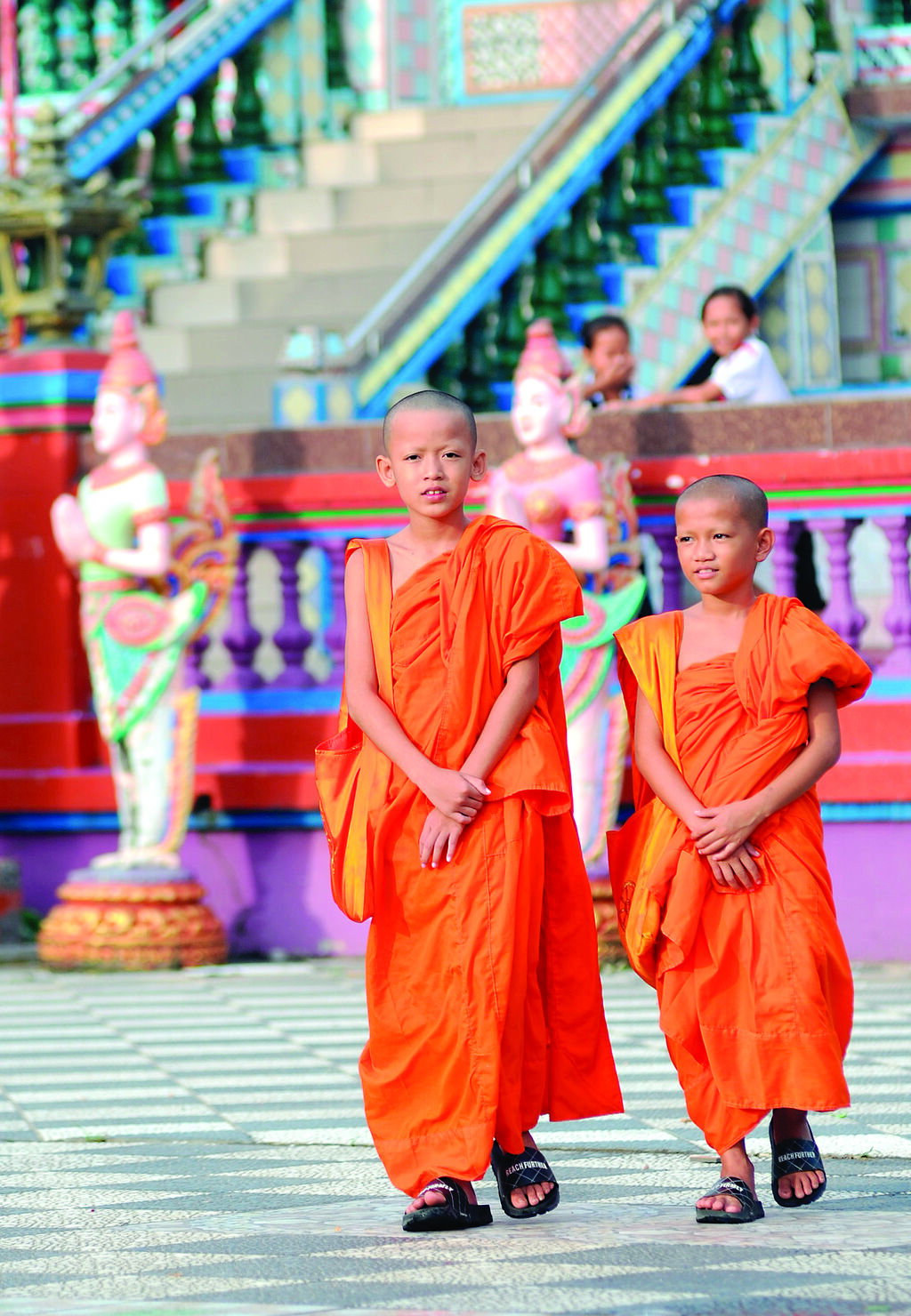 | Jeunes adeptes bouddhistes dans la pagode Wath Sro Loun. |