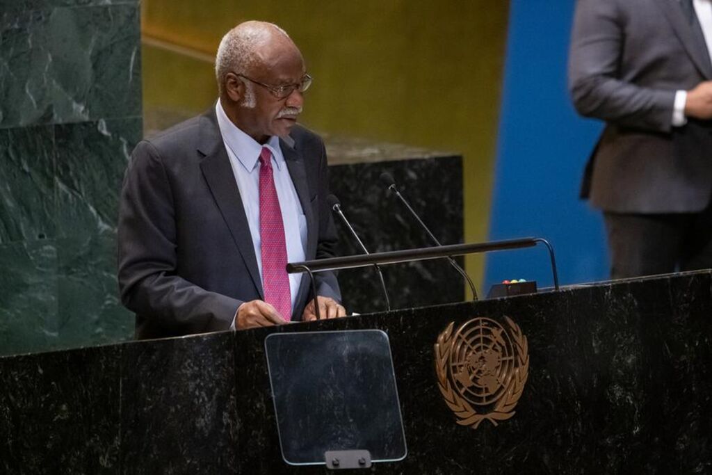 | Philemon Yang, président de l'Assemblée générale des Nations unies, s'exprime au siège de l'ONU à New York, le 10 mars 2025. |