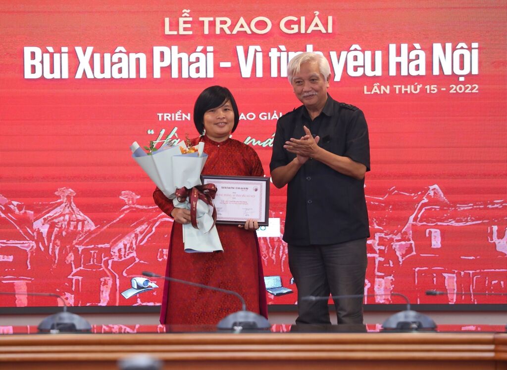 | La chercheuse Nguyên Thi Thu Hoà avec son livre ''Les estampes populaires de Kim Hoàng'' a remporté le "Prix de l'œuvre" du Prix "Bùi Xuân Phai - Pour l'amour de Hanoï" 2022. |
