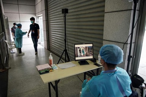 | Contrôle de la température à Qingdao, le 20 juin dans l'Est de la Chine. |