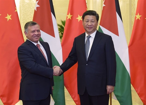 | Le président chinois, Xi Jinping, (droite) et le roi Abdallah II de Jordanie. |