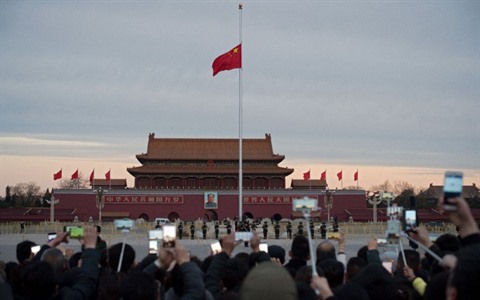 | Cérémonie sur la place Tiananmen avant l'ouverture de la session annuelle du Parlement chinois, le 5 mars 2017. |