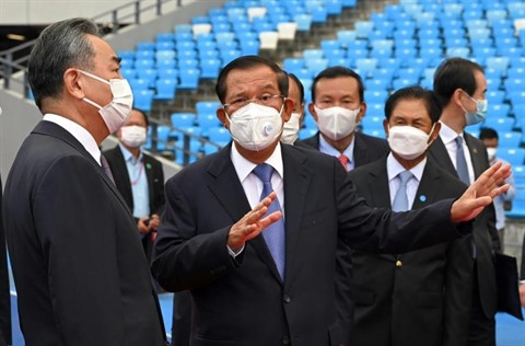L'inauguration de l'enceinte sportive, qui accueillera en 2023 les Jeux d'Asie du Sud-Est, s'est déroulée en présence du ministre chinois des Affaires étrangères, Wang Yi.