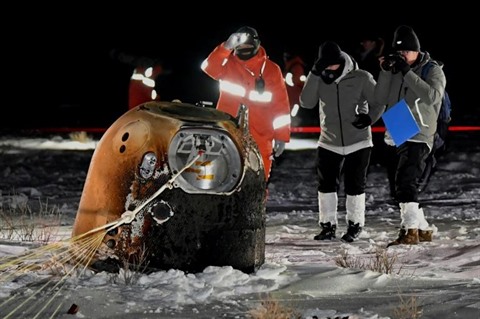 | Le module lunaire chinois Chang'e 5 à son retour sur Terre, le 17 décembre en Mongolie intérieure. |