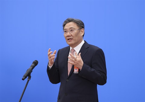 | Le ministre chinois du Commerce, Wang Wentao, le 8 mars à Pékin. |