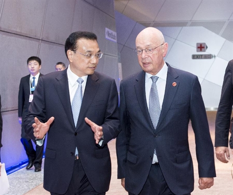 | Le Premier ministre chinois, Li Keqiang, (gauche) et le fondateur et président exécutif du Forum économique mondial, Klaus Schwab. |