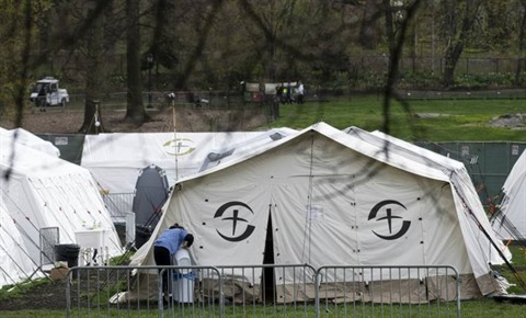 | Un hôpital de campagne à Central Park, le 16 avril à New York. |