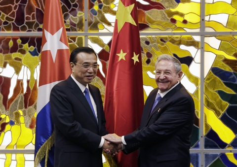 | Le Premier ministre chinois Li Keqiang (gauche) et le président cubain |
