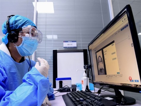 | Un médecin assure une consultation en ligne avec une personne à l'hôpital de Shenyang, le 4 février 2020. |
