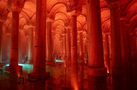 Après cinq ans de lourds travaux destinés à la protéger du prochain séisme, régulièrement promis à la ville, cette étape incontournable de l'histoire sur les rives du Bosphore s'est muée en une scène spectaculaire de sons et lumières qui révèle l'immensité des lieux (138 m de long sur 65 de large).