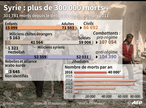 "Des avions de la coalition américaine ont frappé l’une des positions de l’armée syrienne (...) près de l’Aéroport de Deir Ezzor" vers 17h00 locales (14h00 GMT), a affirmé l’armée syrienne. Au moins 80 soldats syriens sont morts selon l’Observatoire syrien des droits de l’Homme (OSDH), une organisation disposant d’un vaste réseau de sources dans le pays en guerre, Moscou évoquant 62 tués et une centaine de blessés.