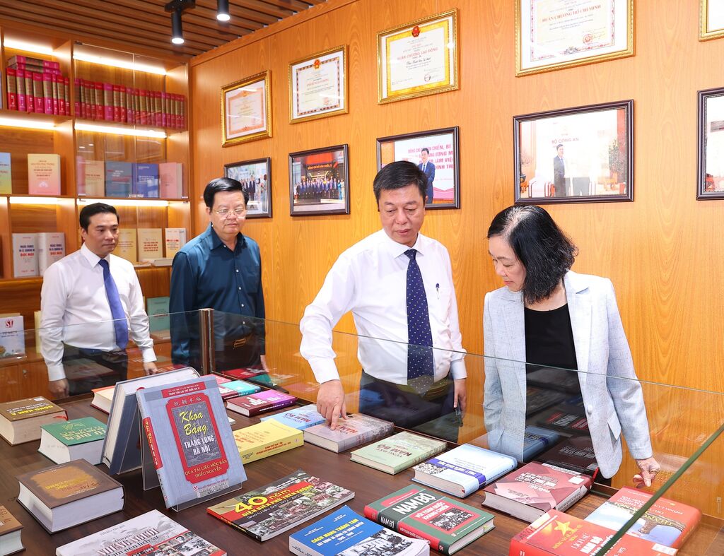 | Truong Thi Mai, membre du Politburo, permanente du Secrétariat du Comité central du PCV et présidente de la Commission de l’organisation du Comité central du PCV, visite la salle de mémoire des Éditions Politique nationale - Vérité. |