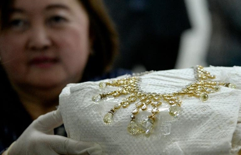 | Un des bijoux présentés au siège de la Banque centrale à Manille, le 24 novembre. |