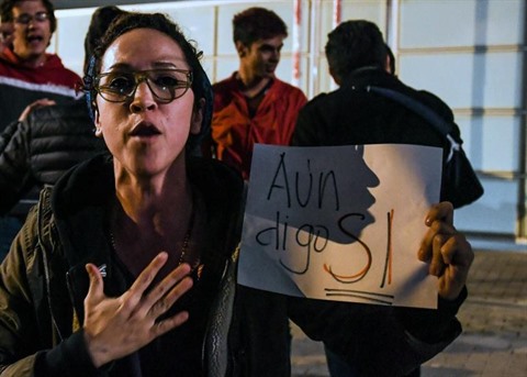 | Une Colombienne brandit une pancarte sur laquelle on peut lire "Je dis toujours oui" après avoir eu connaissance des résultats du référendum sur l'accord de paix avec les Farc, le 2 octobre à Bogota. |