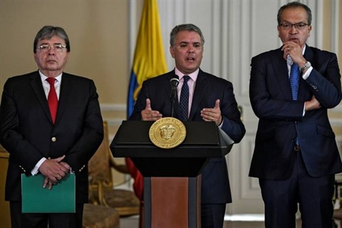 | Le président colombien Ivan Duque (centre), le 5 août à Bogota. |