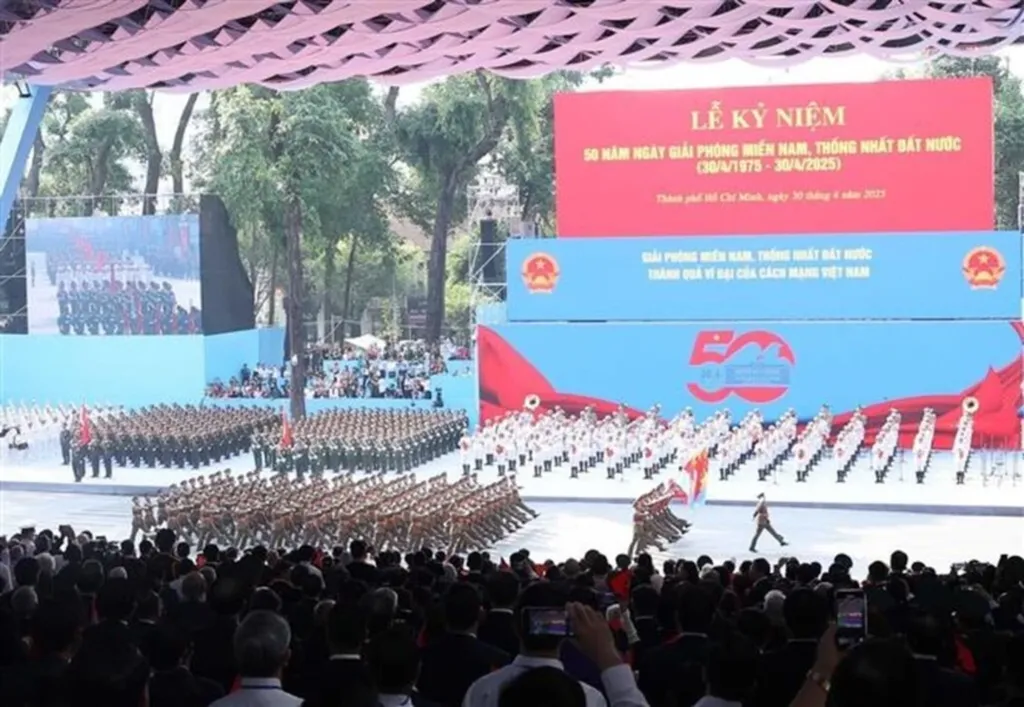 | Cérémonie nationale et défilé pour célébrer le 50e anniversaire de la libération du Sud et de la réunification nationale, à Hô Chi-Minh-Ville, le 30 avril. |