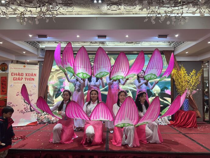 Lors de la rencontre, le personnel de l'ambassade et les Vietnamiens d'outre-mer se sont mutuellement félicités pour le Nouvel An et ont assisté à des spectacles culturels et à des plats traditionnels pour accueillir l'Année du Dragon.