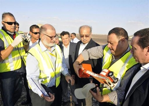 | La boîte noire retrouvée sur les lieux du crash, entre les mains des enquêteurs russes et égyptiens le 31 octobre à Wadi al-Zolomat. |