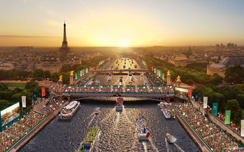 | Panorama prévu de la Seine lors de la cérémonie d'ouverture du JO de Paris en 2024. |