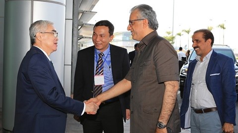 | Le président de la VFF, Lê Hùng Dung (gauche), serre la main au président de l'AFC, Shaikh Salman Bin Ebrahim Al Khalifa, le 31 octobre à Hanoï. |