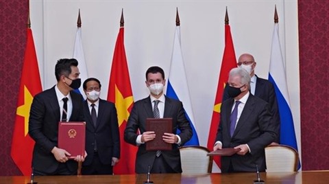 Lors de la visite officielle en Russie du président Nguyên Xuân Phuc, le groupe vietnamien T&T signe un protocole d'accord avec le Fonds d'investissement direct Russe et le groupe Binnopharm sur le transfert de la technologie de production du vaccin Spoutnik V au Vietnam. Photo : VNA/CVN