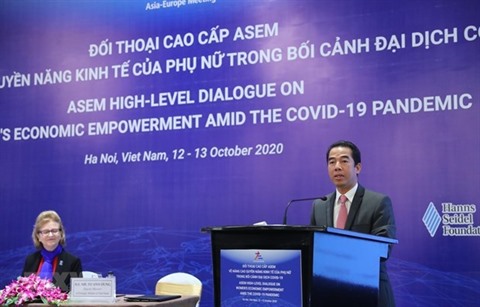 | Le Dialogue de haut niveau de l'ASEM sur l'autonomisation économique des femmes dans le contexte de pandémie de COVID-19 a eu lieu les 12 et 13 octobre 2020 à Hanoï. |