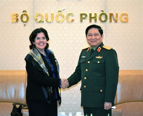 | Le ministre vietnamien de la Défense, Ngô Xuân Lich, et la nouvelle ambassadrice cubaine au Vietnam, Lianys Torres Rivera, le 12 décembre à Hanoï. |