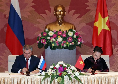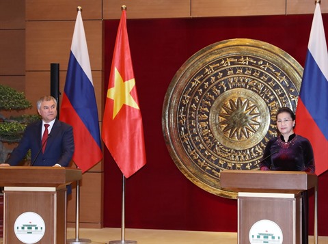 La coopération entre l'AN vietnamienne et la Douma d'État de Russie s'est développée de manière fructueuse au cours des dernières années, tant au niveau bilatéral que multilatéral. Les deux parties ont activement mis en œuvre un accord de coopération signé en 2013, tout en maintenant régulièrement l'échange des délégations de haut rang et des organismes de l’AN et des groupes parlementaires d'amitié, ainsi que le partage d'expériences en matière de législation et de supervision, améliorant ainsi l'efficacité des activités du Parlement de chaque pays. Ils se sont également coordonnés et se sont soutenus lors de mécanismes de coopération parlementaire multilatérale.