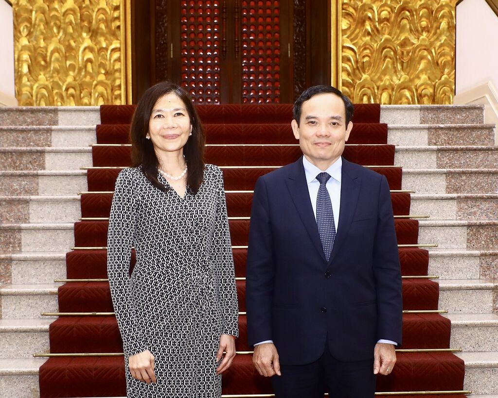 | Le vice-Premier ministre Trân Luu Quang et la coordinatrice résidente de l’ONU au Vietnam, Pauline Tamesis. |