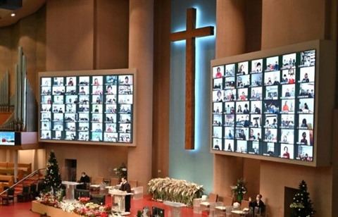 À la Yoido Full Gospel Church de Séoul, l'une des églises protestantes les plus grandes au monde, seules une quinzaine de personnes -un pasteur, des employés, une chorale...- étaient présentes pour la messe de Noël, qui était retransmise en ligne.
