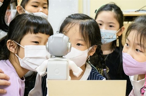 Dites bonjour à "l'Alpha Mini" : haut de 24,5 centimètres, l'engin peut danser, réciter des histoires, mener des karaokés et même enseigner des mouvements de kung-fu aux enfants qui miment ses pompes. "Les robots stimulent la créativité des enfants", a assuré l'enseignante Byun Seo-yeon lors d'une visite de la crèche Maru, lumineuse et animée, à Séoul.