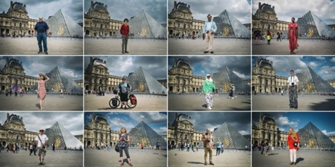 | Une série de 12 photos d'archives montre des touristes de différents pays devant le muséee du Louvre à Paris le 15 août. |