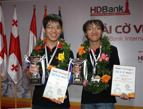 | Les grands maîtres internationaux Lê Quang Liêm (gauche) et Nguyên Ngoc Truong Son. |
