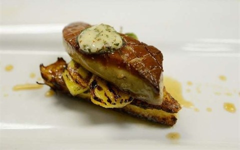 | Du foie gras cuit pour un événement baptisé "Farewell Fois Gras", le 29 juin 2012 à Hermosa Beach, en Californie. |