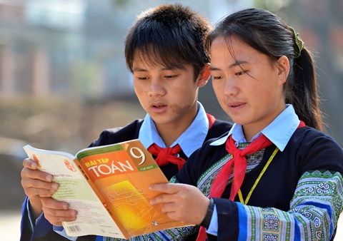 | Deux collégiens du Collège du district Mù Cang Chai, province de Yên Bai (Nord) font la révision. |
