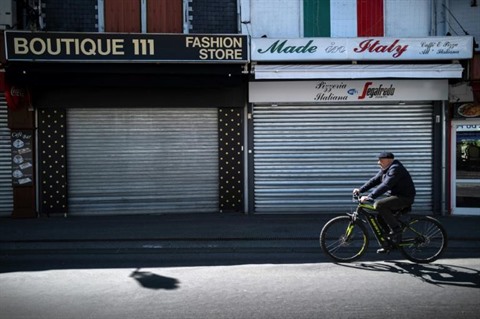 | Un cycliste dans une rue déserte de Lourdes, dans le sud de la France, le 9 avril. |