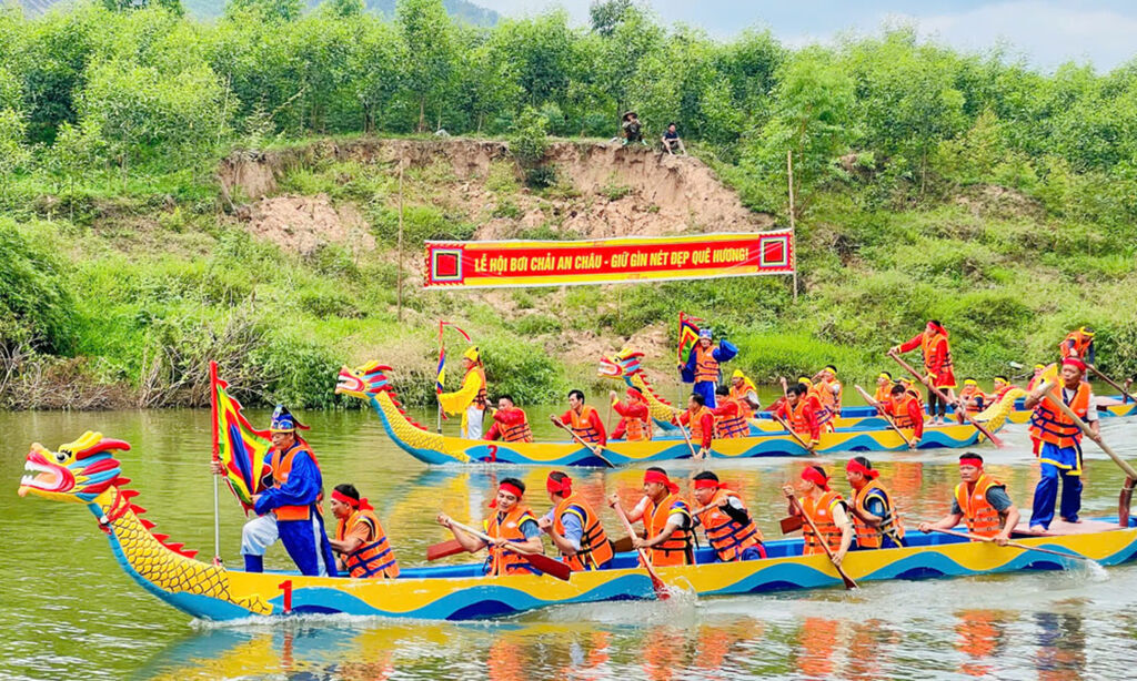 Organisée chaque année le 10e jour du 4e mois lunaire (soit le 7 mai de 2025), la fête de course de pirogues d’An Châu est une tradition ancestrale de la population locale d’An Châu, Son Dông, Bac Giang, remontant au XVe siècle.