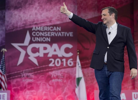 | Le sénateur texan et candidat aux primaires républicaines Ted Cruz, le 4 mars à Oxon Hill dans le Maryland. |