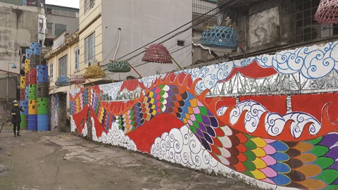 | Un coin de Phúc Tân, une "rue des arts communautaires" à Hanoï, qui était autrefois une décharge sauvage. |
