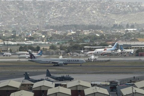 | Photo prise le 14 août 2021 montrant un avion qatari à l'aéroport de Kaboul, en Afghanistan. |