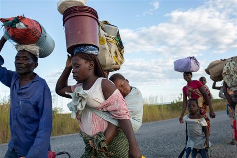 | Des familles du village d'Impire, dans le Nord du Mozambique, fuient des attaques jihadistes, le 14 juin. |