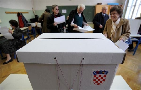 | Un bureau de vote à Zagreb, en Croatie, le 14 avril. |