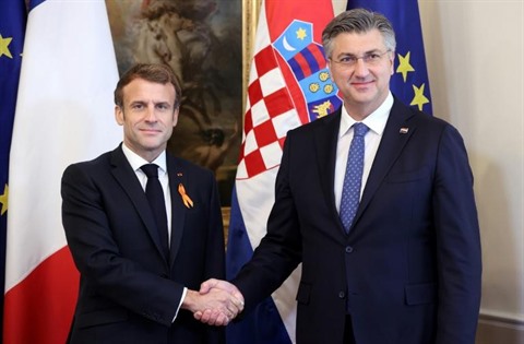 | Le président français Emmanuel Macron et le Premier ministre croate Andrej Plenkovic, à Zagreg, le 25 novembre. |