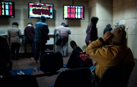 | Des investisseurs chinois devant des tableaux d'indices boursiers, le 18 janvier à Shanghai. |