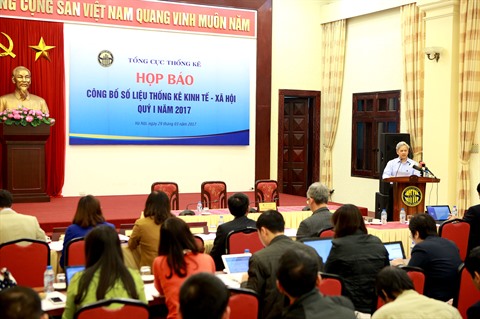 | Conférence de presse pour publier les données statistiques du développement socio-économique au 1er trimestre de 2017, le 29 mars à Hanoï. |