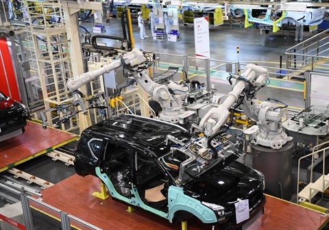 | La chaîne de production d'un constructeur automobile dans la province chinoise de Guangdong. |